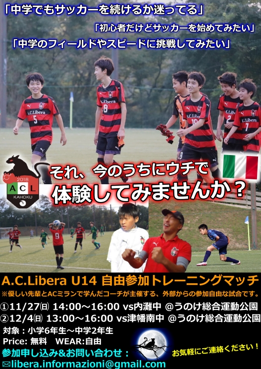 それ、今うちで体験してみませんか?A.C.Liberaのチームに混ざって、色んなチームと対戦し、自分にあったチーム選びの参考にしませんか?