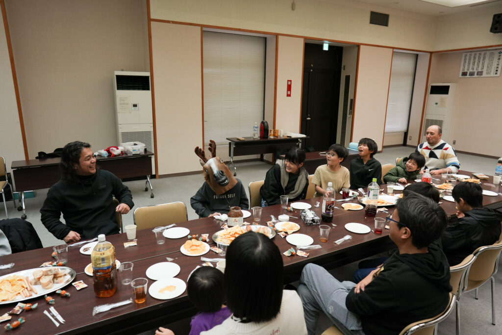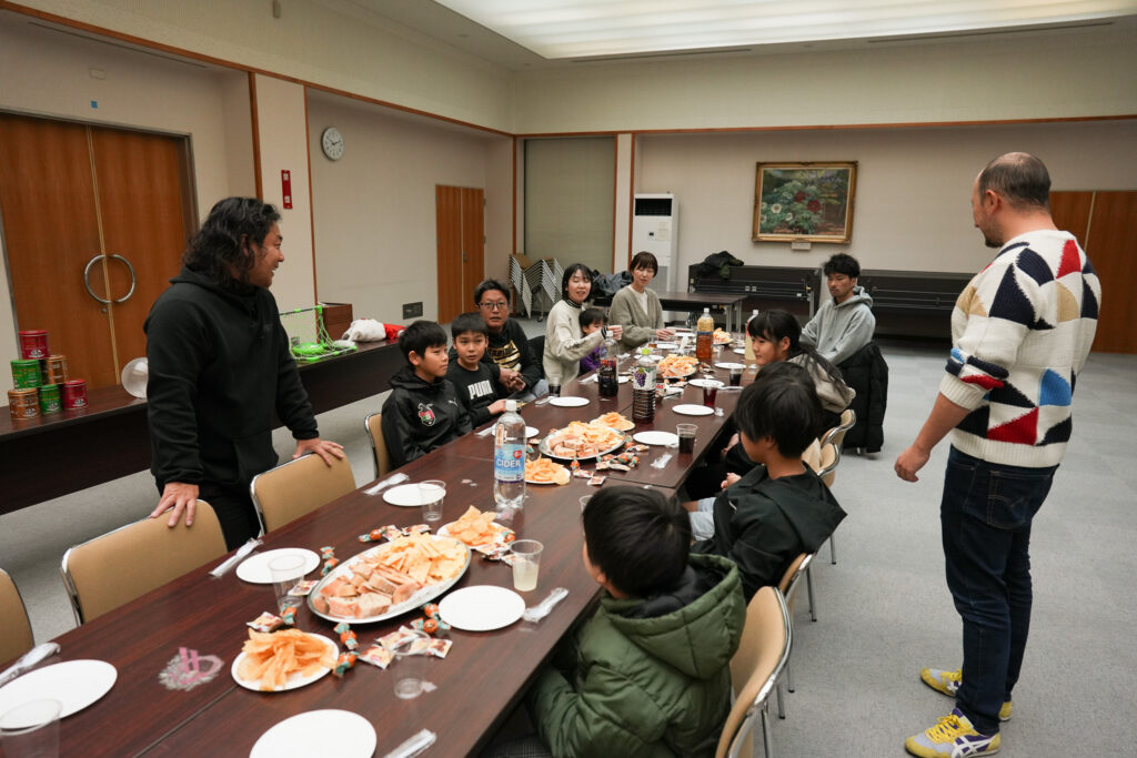 ノリコーチのサッカーについてのお話や、マッシのイタリア語クイズなどで楽しみながら食事をしました。最初は少し緊張気味だった子どもたちも、次第に柔らかい笑顔になっていきましたよ!サッカー以外での交流も素敵ですね。