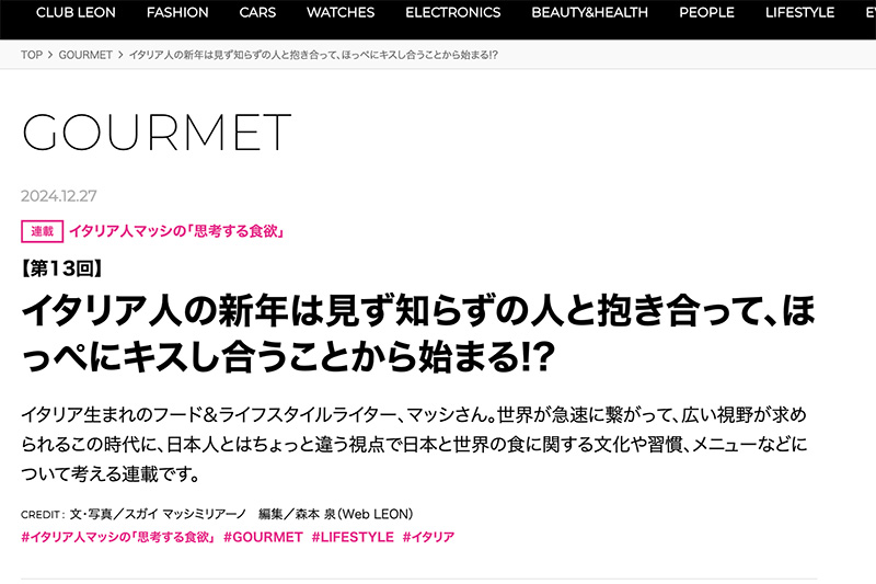 【LEON連載】イタリア人マッシの「思考する食欲」の新記事が公開されました