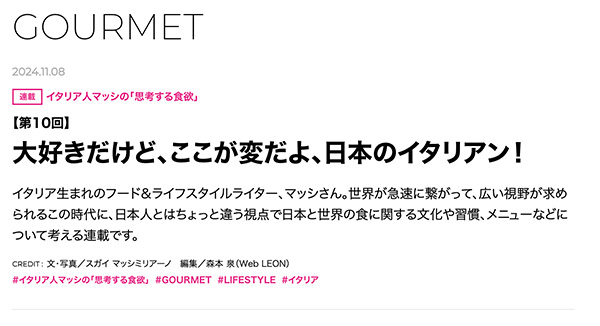 【LEON連載】イタリア人マッシの「思考する食欲」の新記事が公開されました