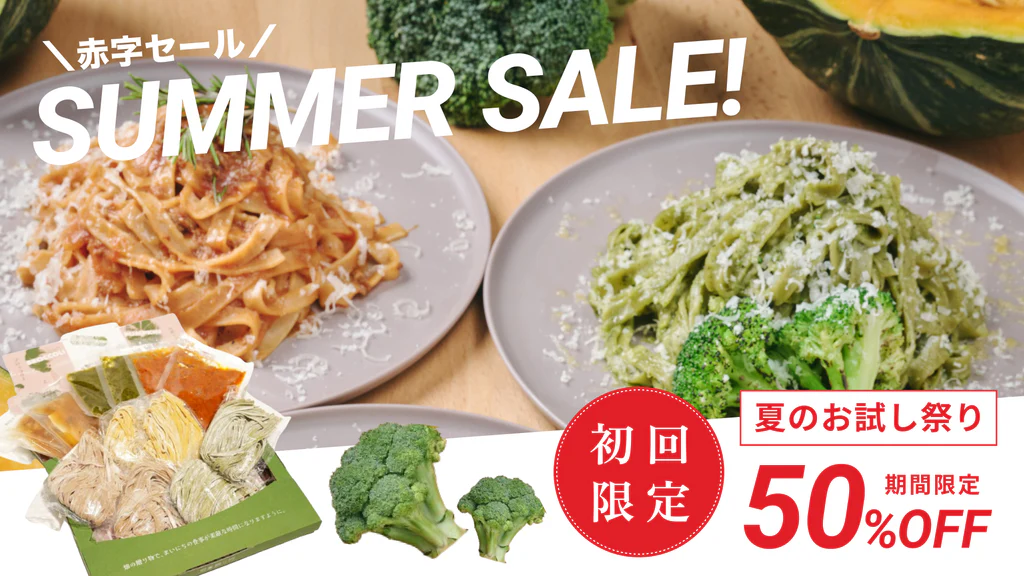 野菜の生パスタ『畑の贈り物』とマッシのコラボキャンペーンのお知らせです。 畑の贈り物は「夏のお試し祭り2024サマーキャンペーン!」として、通常8食セットのところをお試し6食セットでご用意しました。 セット内容 グリーンスムージー生パスタ(ブロッ... -